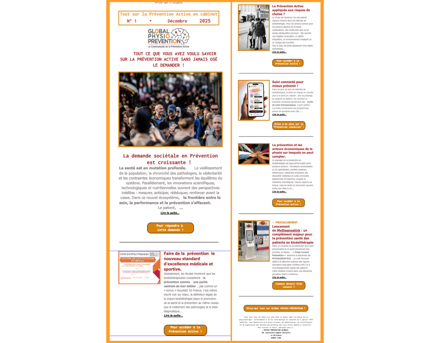 « Avec le réseau GLOBAL PHYSIO PREVENTION, je le dis sans détour : ça change la pratique ! Dans mon cabinet, la prévention n’est plus un joli mot posé sur une affiche. C’est devenu une colonne vertébrale. Une philosophie opérationnelle. Au quotidien, je peux recommander des solutions adaptées, matériel de prévention des chutes, dispositifs de récupération, outils de dépistage… pas des gadgets, mais des technologies choisies parce qu’elles ont un impact réel sur la trajectoire santé de mes patients en individualisant encore plus finement les stratégies de prévention.